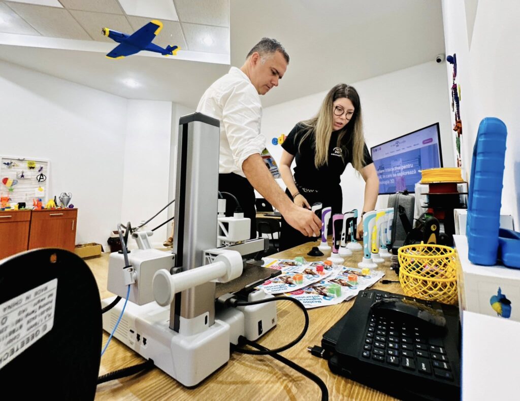 Pe strada Prieteniei nr. 14, într-un spațiu prietenos și plin de culoare, Alexandra și Tudor Ivanciu îi învață pe copiii din Bacău cum să creeze obiecte reale, pornind de la comenzi pe computer, cu ajutorul imprimantelor 3D.